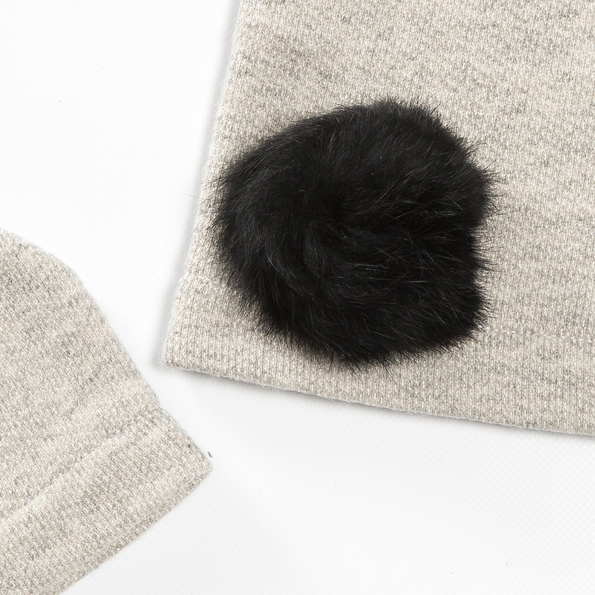 Cappello in calda felpa di colore grigio con pon pon  nero in lapin.