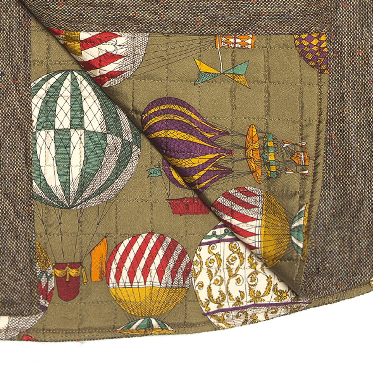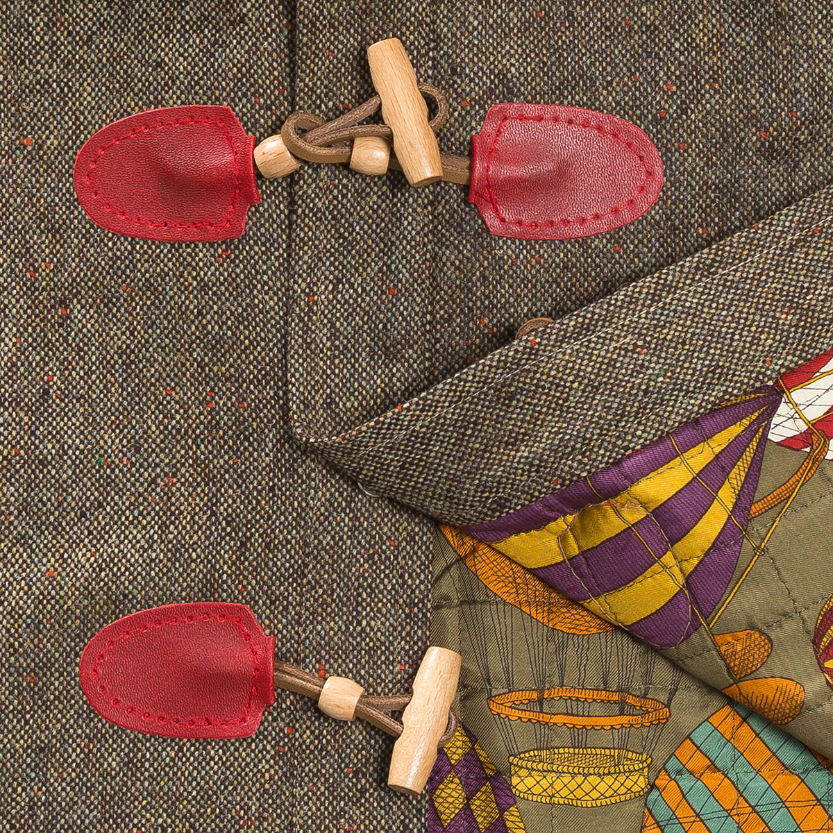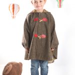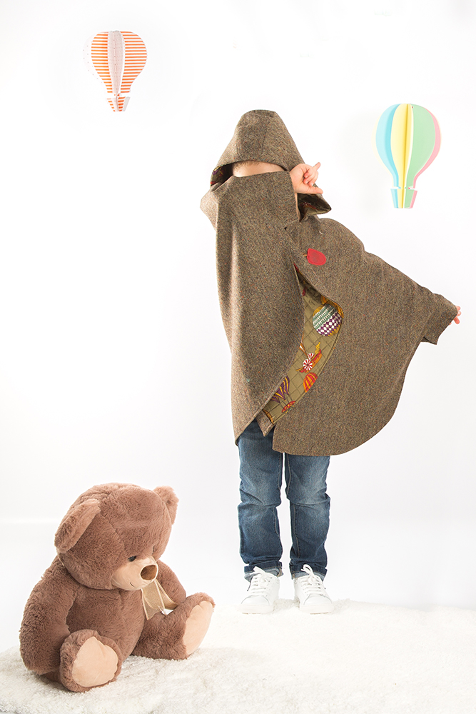 Mantellina in lana esterna e piumino trapuntato interno con fantasia mongolfiere.