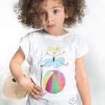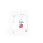 T-shirt in cotone fiammato e manica arricciata, stampa a caldo con particolari glitter sul corpo della bambolina.